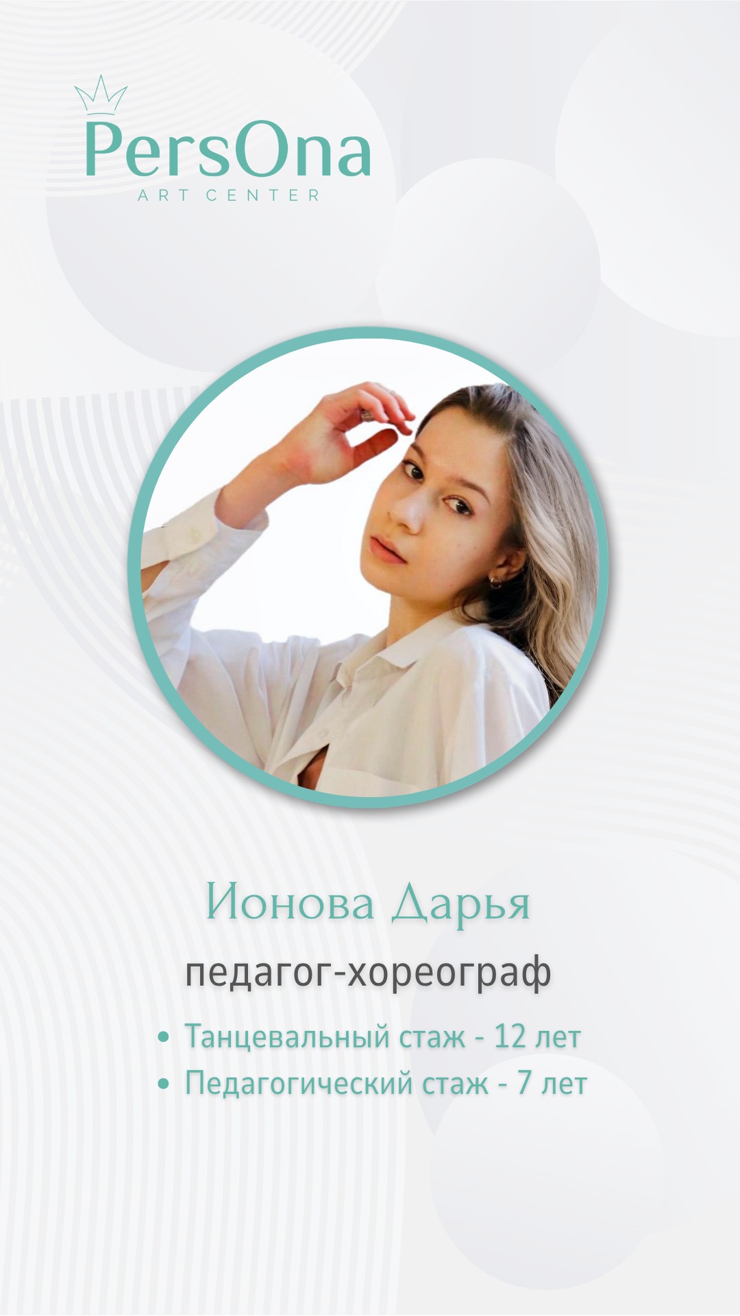 Профессиональные преподаватели, индивидуальный подход к каждому ребенку и теплая атмосфера делают занятия незабываемыми. Моя дочь с радостью посещает уроки и каждый раз возвращается счастливая и полна новых танцевальных навыков